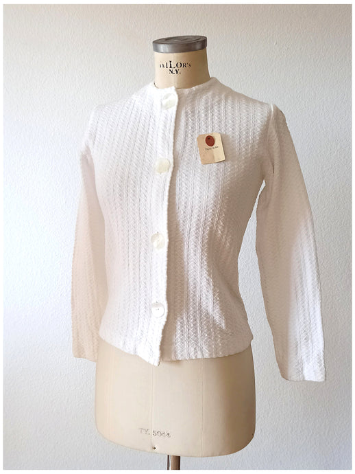 1950s - DARIO SOLES, Spain - Deadstock White Cardigan - Sz 2