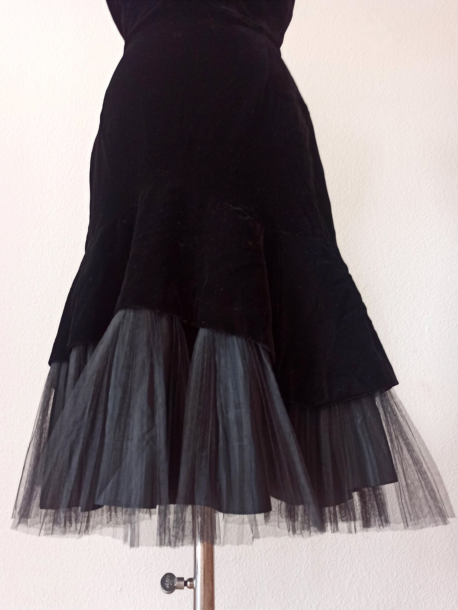 1950s - Spectacular Rhinestones Fishtail Velvet Dress - W25 (64cm)