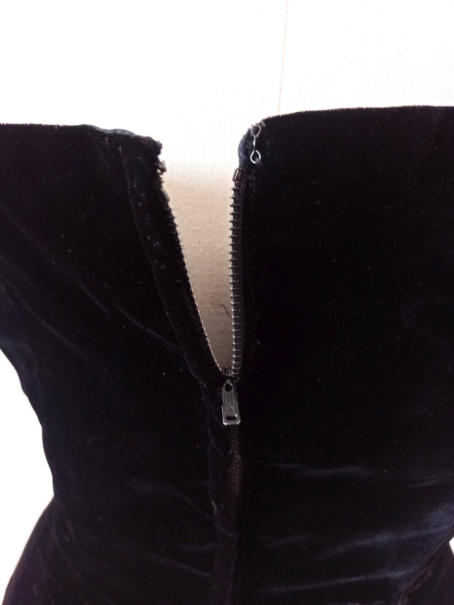 Fabric: Velvet, lace, metal zipper