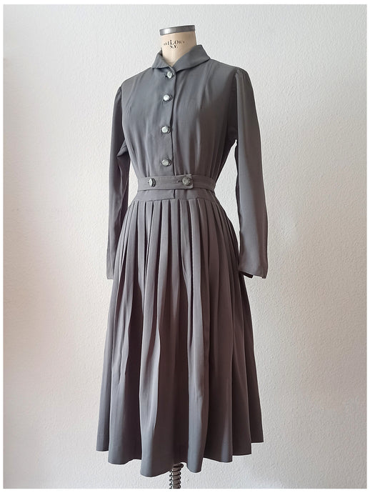 RESERVED DO NOT PURCHASE - 1940s - Exquisite Dark Grey Gab Wool Dress - W29 (74cm)