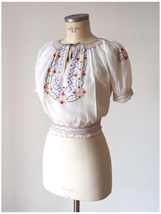 • 1940s 1950s - Exquisite Hungarian Embroidery Blouse - W28.5 (72cm)