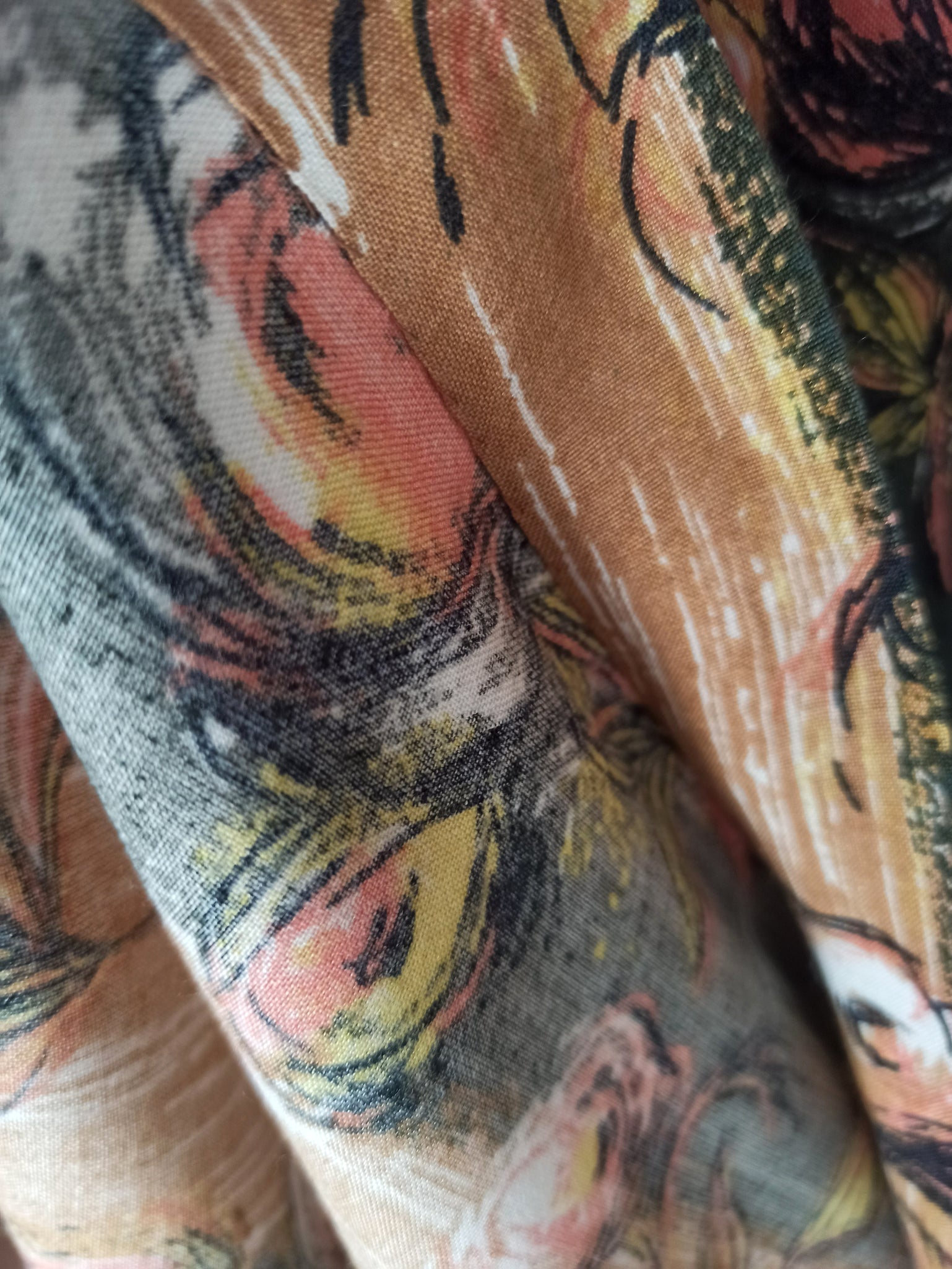 1940s 1950s - Stunning Floral Bouquet Novelty Rayon Dress - W27 (68cm)