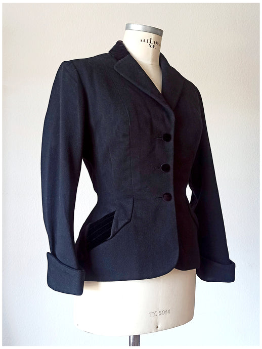 1940s - MARIE-LARRIBET, Paris - New Look Black Wool Jacket - W31 (80cm)