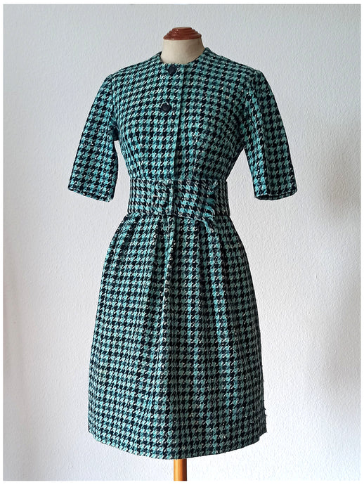 1950s 1960s - Gorgeous Houndstooth Wool Dress - W24.5 (62cm)