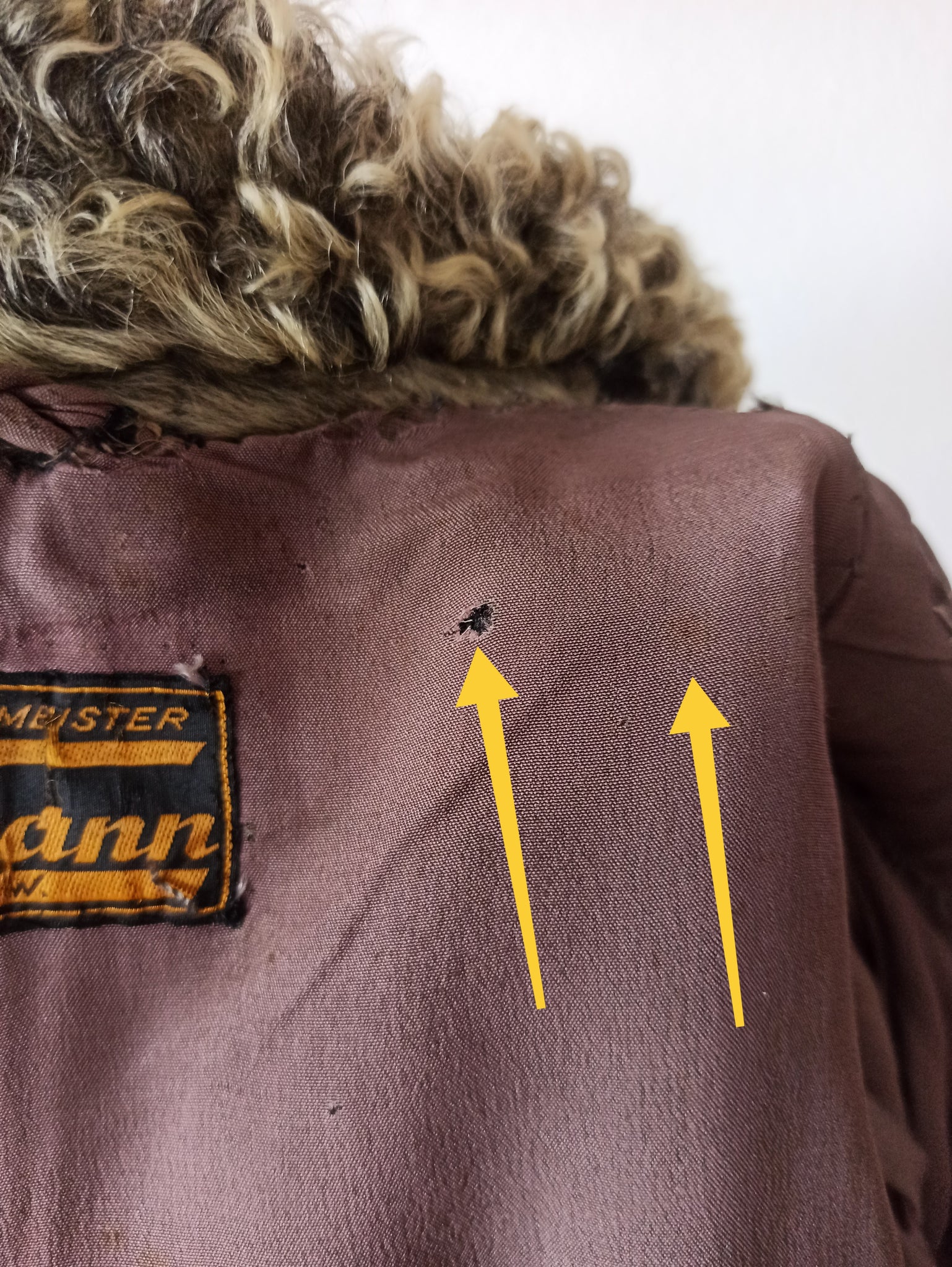 Condition: Near mint condition considering her age! The fur is in fabulous condition, but with a couple of small damages (view photo). Two of the buttons have partially lost fur (view photo). The upper lining has a few pinholes/tiny holes/spots (view photos). The armpits are in perfect condition and the rest of the lining too. No other issues!