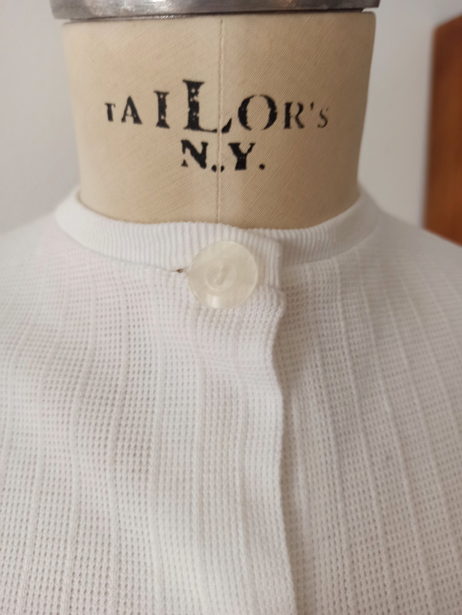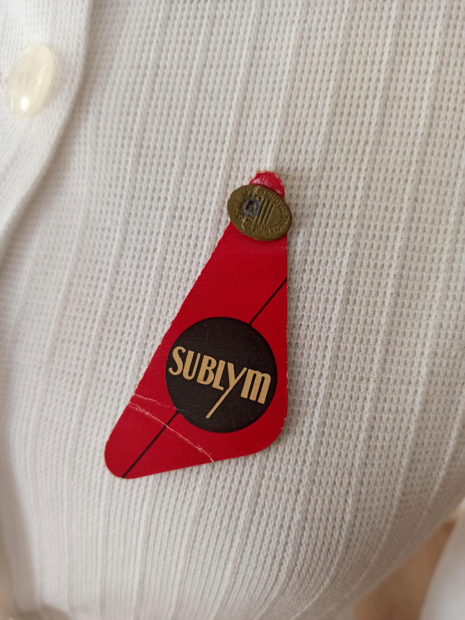 This is a gorgeous cardigan from the 1950s by Sublym, Catalonia (Spain) in deadstock condition with original tags. The fabric is white stretchable cotton knit, super comfortable. Tag reads size 2.