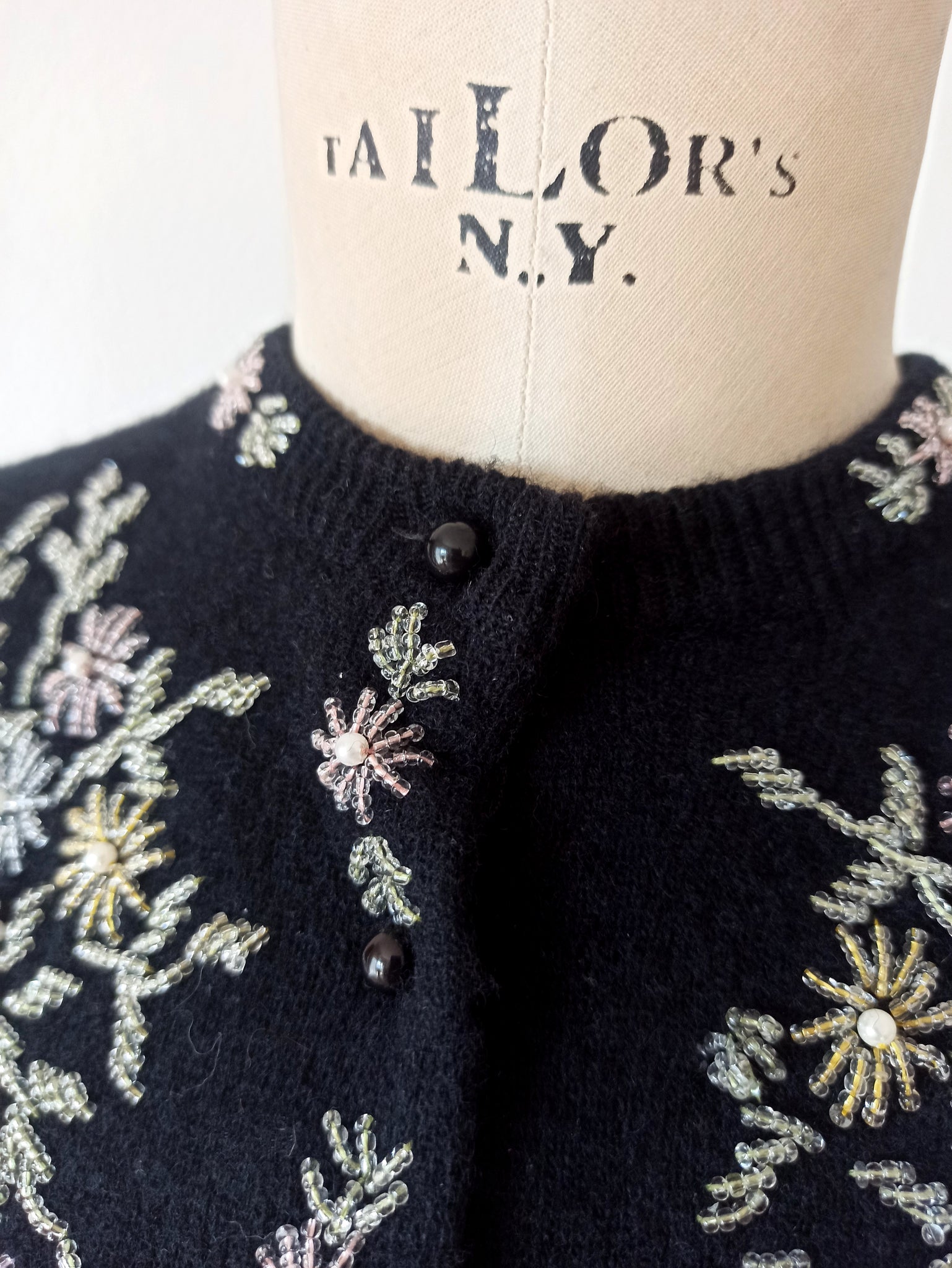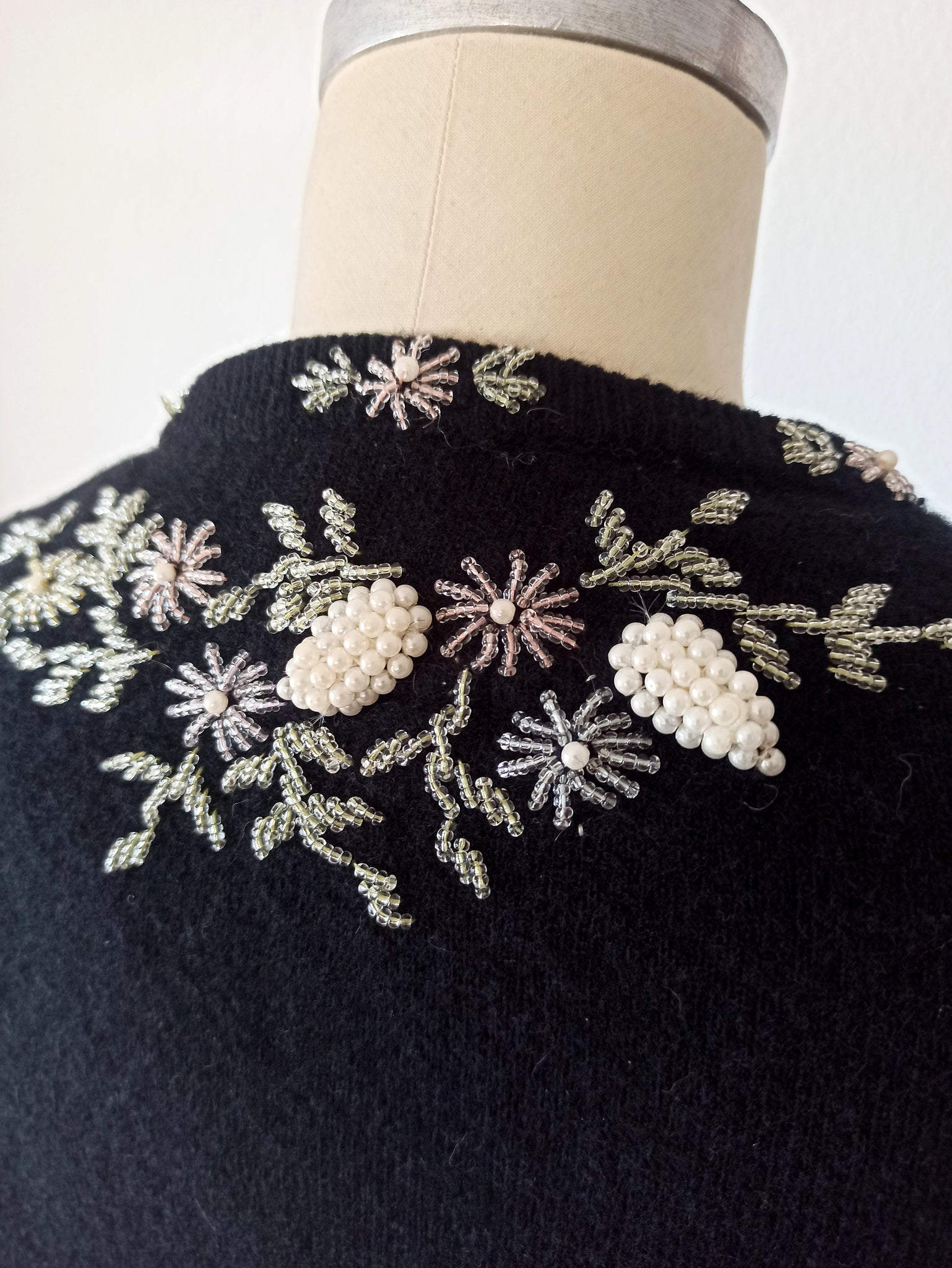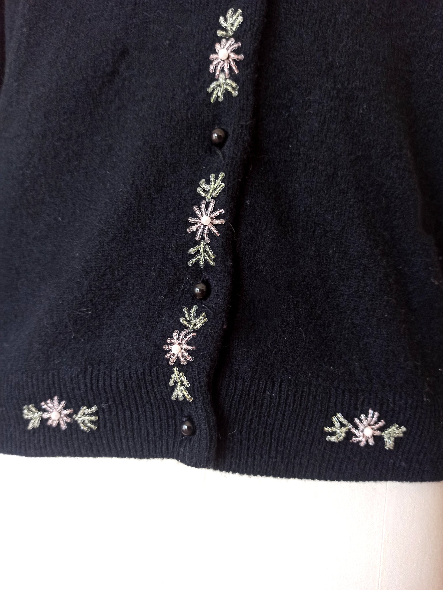 1950s - Marvelous Black Beaded Angora Wool Cardigan
